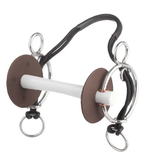 The Beris Comfort Bar Kombi bit features the ergonomic mullen mouthpiece in gentle Beris soft plastic material. The Kombi style bit has a rope chin strap that threads through loops in the gag cheek for greater stability.