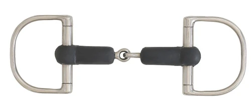 A basic bit found in most tack rooms, this soft, Metalab Rubber Mouth Snaffle Dee by Centaur comes in sizes 4.5, 4.75, 5, and 5.5 inches to fit almost any horse. The softer rubber coating of this English bit gives your horse something to chew on for better bit acceptance. Please inspect your bit carefully prior to each use to check for damage to the rubber that can occur over time.
