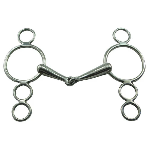 The Coronet Continental Hollow Mouth 3-Ring Gag is a simple snaffle mouth in 16mm width. This bit is popular for jumping and offers three leverage options. The Continental style bit has a hollow mouthpiece so it’s lighter in the horse’s mouth. This style bit is useful for giving the rider more control with better stopping and slowing ability.