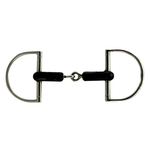 The Hunter Dee Ring with Rubber Mouth Dee bit can be described as a mild snaffle. The “D” shaped rings help with lateral control of the head and the rubber increases the diameter of the mouthpiece and softens its severity. The rubber snaffle effect would be a little stronger than a similar Eggbutt bit. The rubber bit can be used on almost any horse and is available in sizes 4.75, 5, 5.25, and 5.5 inches.
