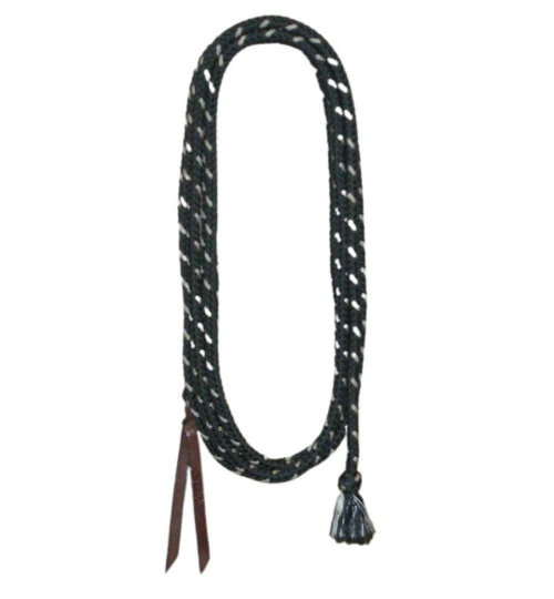 This mecate comes in 22″ for use with a snaffle bit and comes with a gaucho knot on one end and a leather popper on the other.