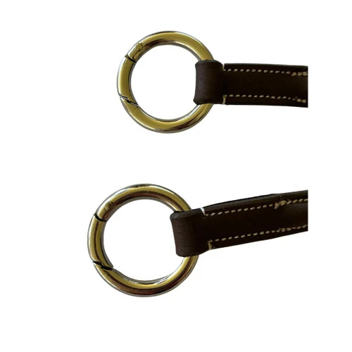 DziaSport Running Martingale Attachment is made from the same soft, beautiful leather as other DziaSport tack. The dark brown leather with plain raising and white stitching is handsome enough for the equitation ring and coordinates nicely with most brown/havana tack. It is sturdy and durable for use on the cross country course, as well. Mary’s has the DziaSport Yoke, No-Rub Stirrup Leathers, and Ergonomic Monoflap Girth plus more from this unique woman-owned equestrian brand.