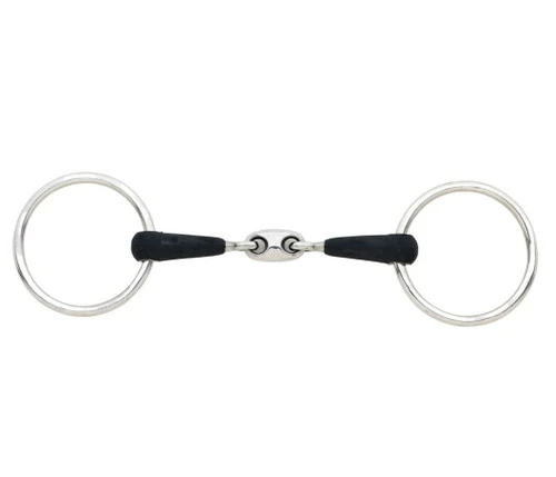The Eco Pure Oval Mouth Loose Ring bit from Centaur is made with environmentally friendly, horse-safe materials and has a more refined, thinner, and abrasion-resistant mouthpiece than typical rubber mouth bits. This loose ring horse bit is an Eco Pure design that is REACH standards compliant.