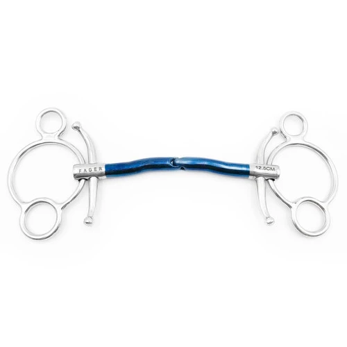 Fager Gustav Sweet Iron Universal bit has a unique design that can be used two ways on your horse. For tongue relief, use the bit normally with the Fager horse logo on the right side. For bar relief, turn the bit upside down. The single jointed mouthpiece will not push against the palate or impact the mouth negatively when used upside down. It simply increases tongue pressure and decreases bar pressure. A horse needing tongue relief may evade or fuss with the bit, try to put his tongue over the bit, or has an inconsistent connection. A horse needing bar relief may be stiff, bites or drops the bit, falls behind, or does not seek contact.
