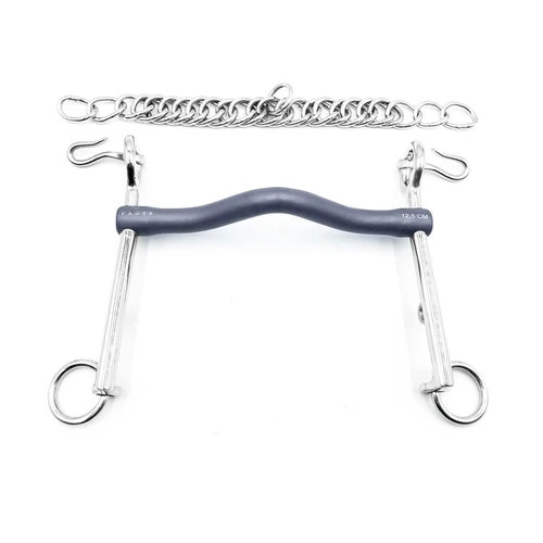 Fager Sofia Titanium Weymouth in 5cm or 7cm cheek length has a unique titanium mouthpiece designed to give tongue relief to the sensitive horse. The high port is curved forward to put more pressure on the tongue when the curb rein is engaged. The Fager Sofia Weymouth makes it easier for the horse to accept a double bridle since there is more room for the bradoon behind the bit. The Fager Sofia Weymouth encourages the horse to relax, connect, and not fall behind.