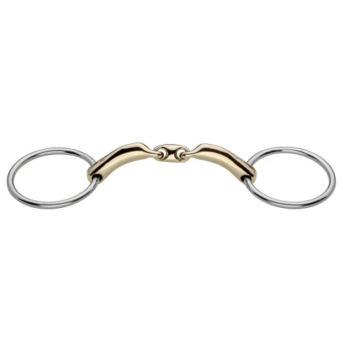 The Herm Sprenger Novocontact Double Jointed Loose Ring Bit is uniquely shaped and especially sensitive, ensuring precise and effective communication. It’s designed to improve interaction between horse and rider for better contact and acceptance of the bit.The oval shaped mouth increases surface area on the tongue and bars without taking up extra space in the mouth (like a typical round-shaped bit does). This unique oval shape of the novocontact bit creates a soft, wide surface area impact with normal contact. It also intensifies the impact as stronger reins aids are applied (rolling the bit forward, making the surface area narrower).