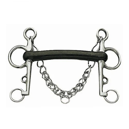 Korsteel Hard Rubber Mullen Pelham offers different levels of pressure with a mullen mouthpiece for tongue and bar pressure and curb action when the bottom rein is engaged. The mouthpiece is slightly curved to accommodate the tongue and create even pressure.