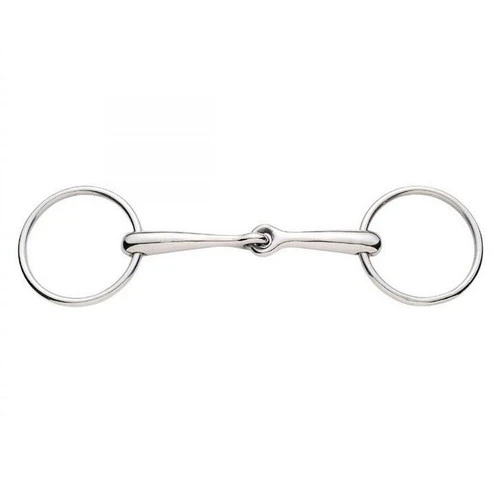 The single jointed Korsteel Solid Mouth Loose Ring discourages the horse from leaning and allows a wider range of pressure to get a response. Be sure to add bit guards to protect your horse’s lips and mouth corners from possible pinching that can happen with a loose ring cheek. This Korsteel Solid Mouth Loose Ring is eligible for . Click now for details!