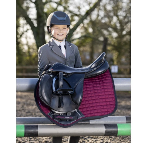 The LeMieux Junior Pro Jump Square Saddle Pad gives young equestrians the top performance and professional look they need for competition. The Junior Pro Square for ponies has a high quality quilted cotton outer and a bamboo lining. The ergonomic design with fleece trimmed high wither assures a correct fit and easy placement on the pony’s back.