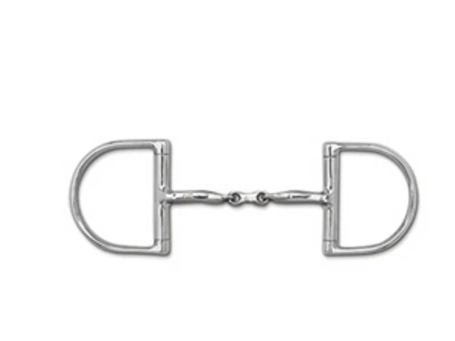 This Myler French Link Dee Ring snaffle bit is made of stainless steel with a copper inlay mouth to encourage salivation and acceptance of the bit. A Myler Level 1 bit, the Myler French link Dee has a MB 10 mouthpiece and no hooks on the dee rings. This bit is available in sizes 5 and 5 inches.