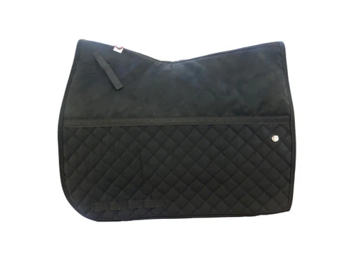 The Ogilvy Dressage Friction Free Pad might just be THE perfect pad. Made of durable poly cotton twill, protected with stain resistance on the outside, and Ogilvy’s special quick-dry anti-bacterial/anti-fungal brushed poly on the inside. There is no foam in the inner section; it has been replaced by high performance hollow core fiber that wicks away the moisture from your horse and dries quickly after use.