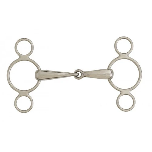 Centaur Stainless Steel Single Joint 2 Ring Elevator Gag Pony Bit. Lifetime guarantee against rust. This pony jumper bit is available in size 4.5.