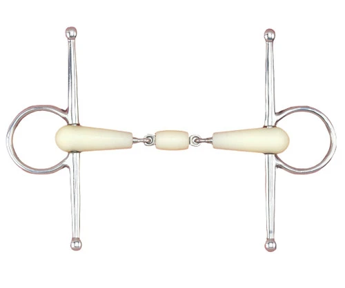 Happy Mouth Double Jointed Roller Full Cheek Bit. Made of an apple-scented, space age polymer, Happy Mouth bits encourage ponies to accept the bit, providing a gentler bit for a happier pony. All pony-size Happy Mouth bits have proportional cheeks and shanks. Size 4.5″.