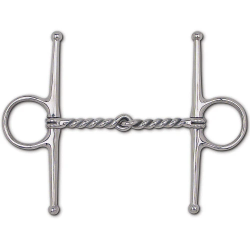 Stainless Steel Twisted Wire Snaffle Full Cheek Bit is designed for use by experienced, knowledgeable trainers. The twisted wire design provides significantly more tongue pressure than a standard smooth snaffle. Features longer 7″ cheeks for greater leverage. Size: 5.
