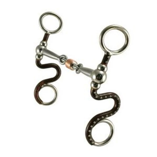 Tom Balding Santa Maria Slick 50 gives the horseman a useful bit with classic vintage beauty. The handsome ballhinge S shanks are finished in brown with dots for a low key and classy look. The Tom Balding Slick 50 mouthpiece is a good choice for working with a horse on lateral flexion with its independent action. Smart design causes the horse to keep his shoulder and head in the proper position while bending in the ribs. The Slick 50 Santa Maria with shorter shank makes a good transition from a snaffle, especially for horses with a light mouth.